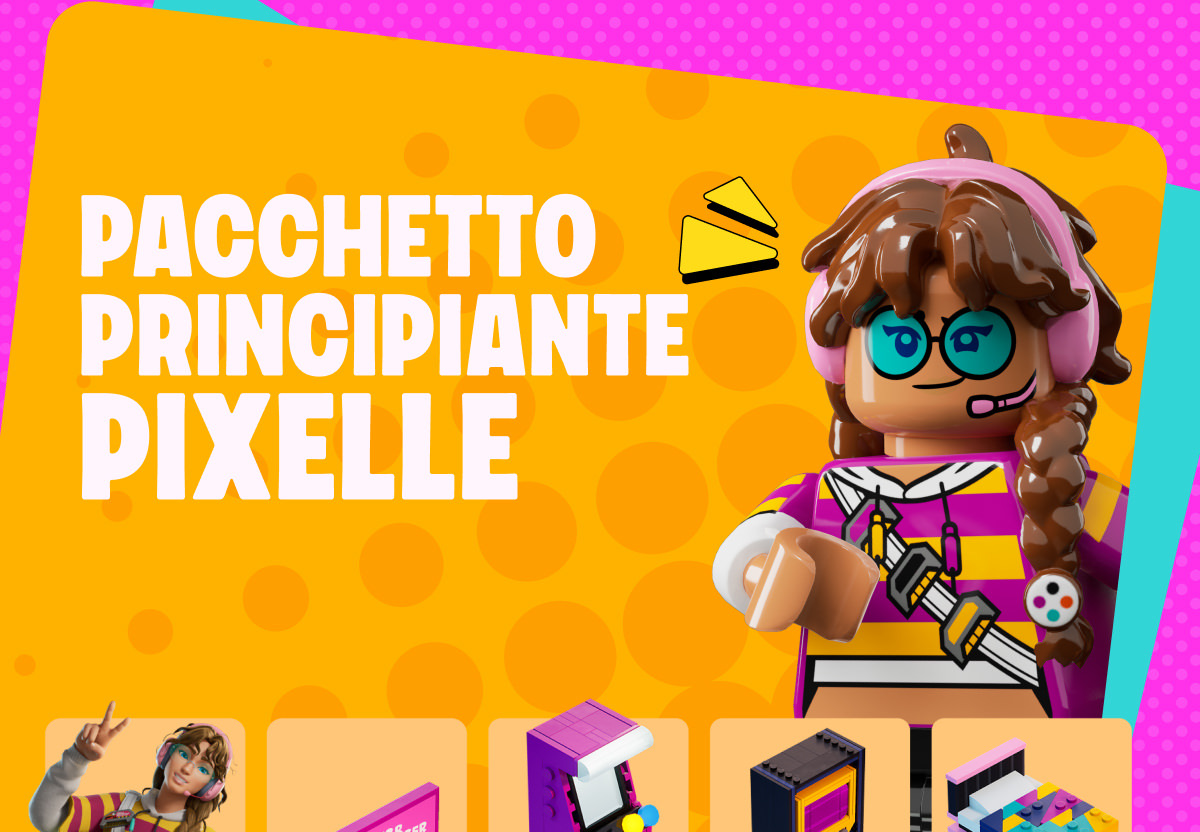 Includes: Pixelle Outfit (with LEGO® Style) LEGO® FORTNITE Rainbow Rec Room Decor Bundle (including 12 Decor Items) Decor Items are available in your LEGO® Fortnite Build Menu after purchase, and require resources to be built in Survival worlds. Decor Items can be placed after you have met the Survival world progression