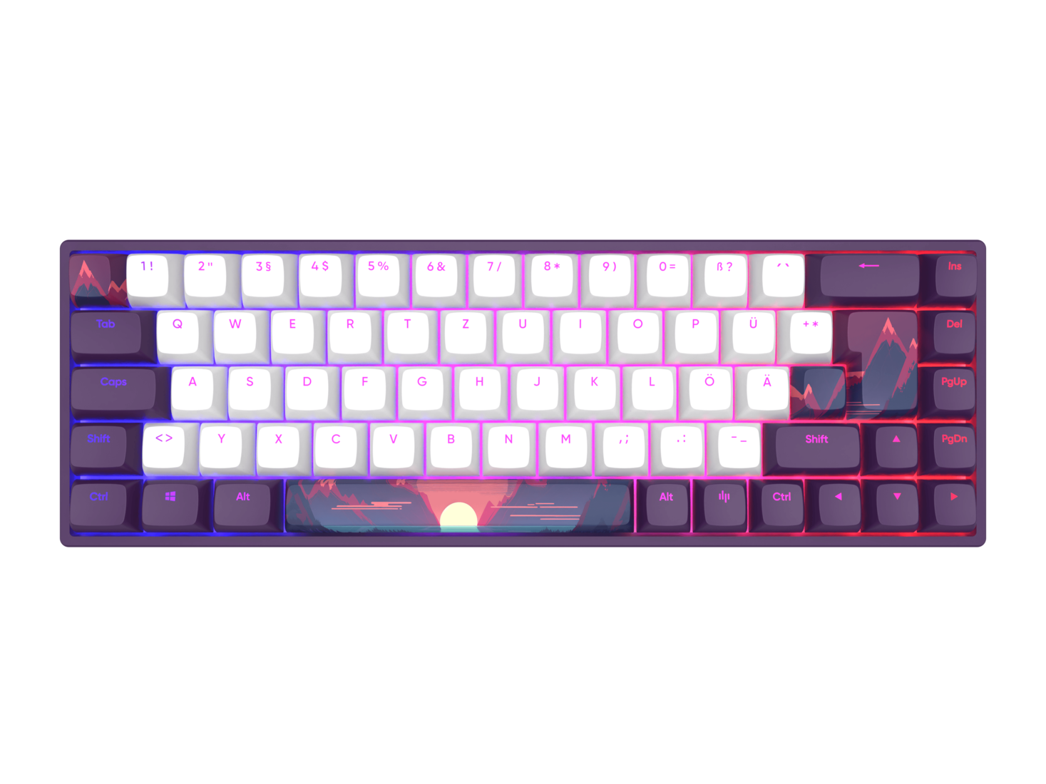 ntroducing the Dark Project - 68 Sunrise - a keyboard designed with Gamers in mind. This Ultra-compact 65% keyboard boasts a Violet/White color scheme. It